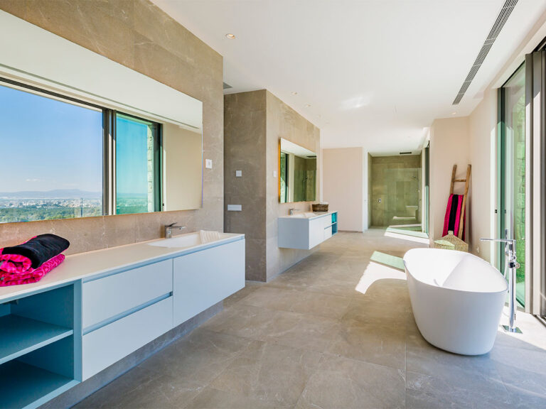 En la planta superior se sitúan cuatro dormitorios, todos con baño privado. Destaca el uso de suelos de parquet en toda esta planta, que aportan un toque cálido y elegante. El dormitorio principal cuenta con un amplio baño de aproximadamente 34 m², desde el que se pueden disfrutar de unas vistas privilegiadas.